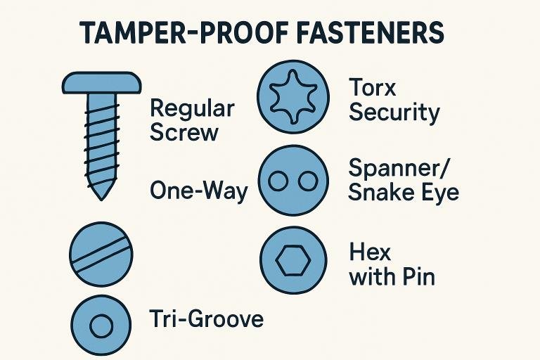 - Tamper-proof fasteners use specialized head designs that require unique tools, preventing unauthorized removal.